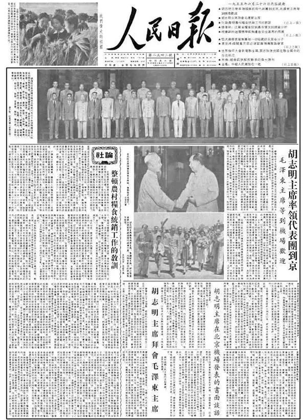 这些报纸让阮富仲很惊喜,他仔细端详着这些60多年前的照片和文章。 此外,习近平还精心挑选了今年1月份阮富仲到访中国时的人民日报。
